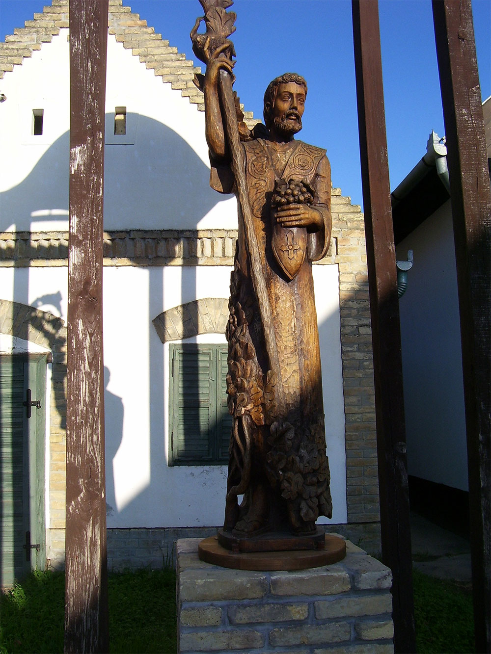 A szobor Vas Csaba alkotása, a borászok védőszentje, a borünnepen megöntözzük a legjobb fehér és vörösborral, hogy jó minőséget adjon. Népi Hiedelem, ha Orbán napján esik rossz lesz a szőlőtermés, ezért meg kell vesszőzni.